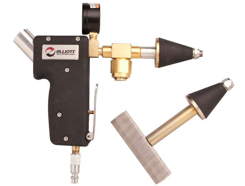 Pressure and Vacuum Leak Test Guns are economical, simple to operate, and are useful for checking vessels that are out in the field. Pressure Leak Test Guns create an airtight seal on both ends of the tube, monitoring for drops in air pressure. When using a Pressure Leak Test Gun, simply connect to an air supply, insert a set of seals into both sides of the tube ends and pressurize the tubes. Once the tubes are pressurized, monitor the gauge on the top of the guns for any drop in air pressure. If the seal breaks, that indicates a tube leak is present. Similar to Pressure Test Guns, Vacuum Leak Test Guns create a vacuum tight seal on each tube end. The gun will then monitor for any loss of vacuum, indicating a tube leak. When using a vacuum test gun, first connect to an air supply and then plug one tube end with the test gun and the other end with the Plugging Tool. When you are ready, press the lever to trigger the vacuum system, which will quickly and efficiently evacuates the tube. Again, make sure to monitor the gauge on the gun for any loss of vacuum to indicate a tube leak.