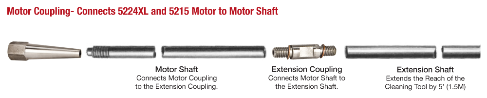Elliott Tool offers a number of shafts and couplings to be used with the 5224XL and 5125 Heat Exchanger Tube Cleaners to accommodate different tube sizes and tube lengths.